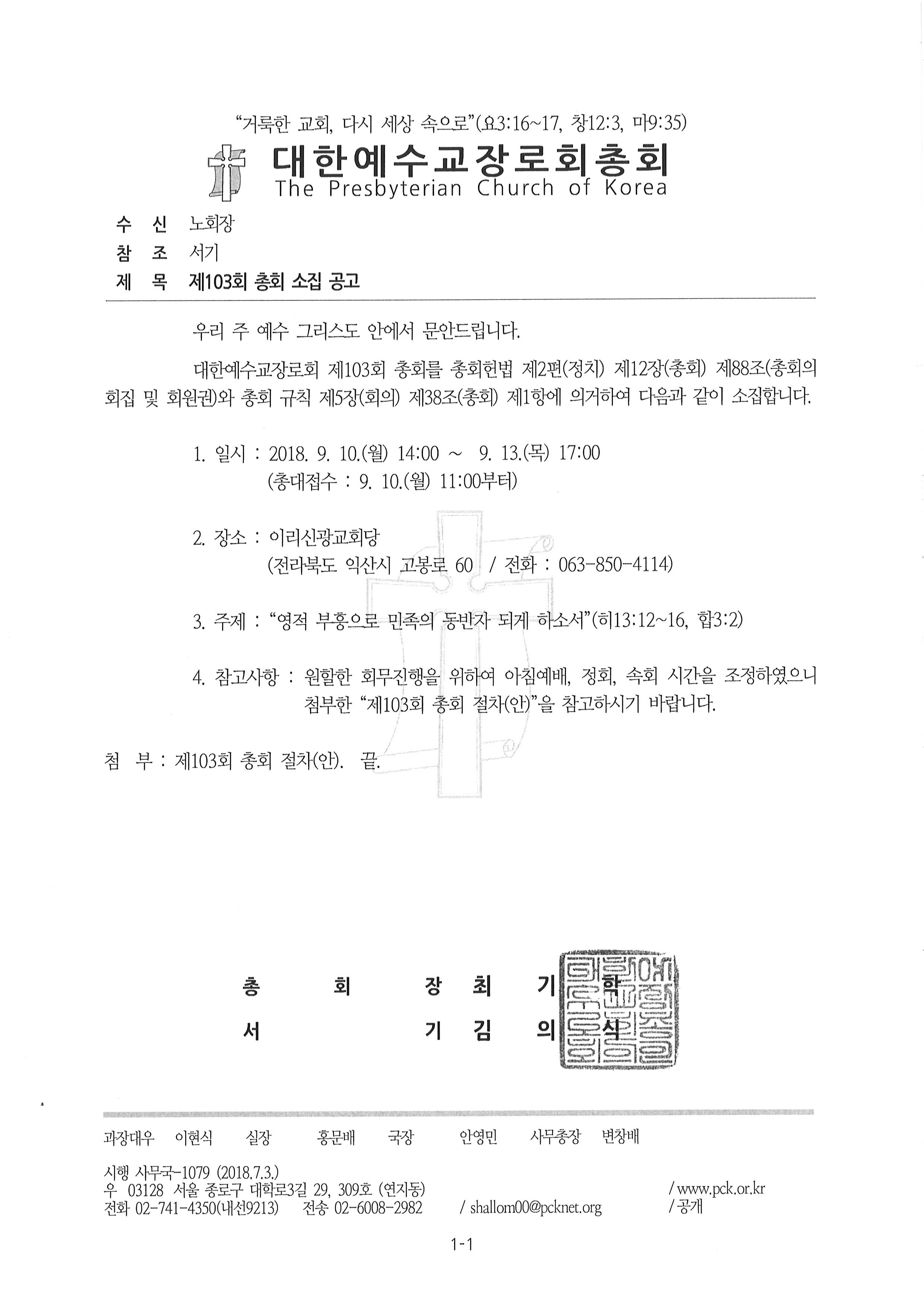 Á¦¸ñ   [ÀϹÝ] Á¦103ȸ ÃÑȸ ¼ÒÁý °ø°í(9/10-13)