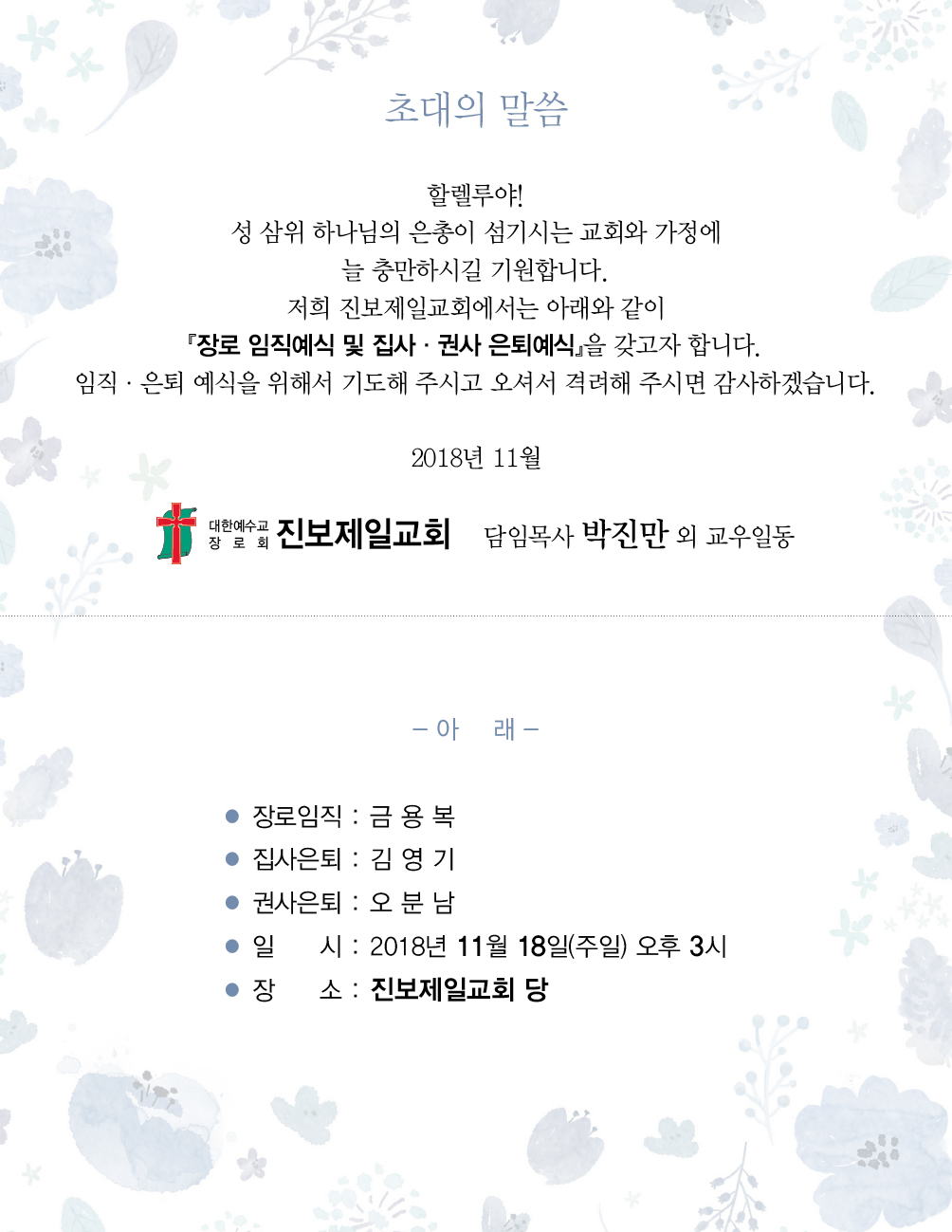 Á¦¸ñ   [ÀϹÝ] Áøº¸Á¦Àϱ³È¸ ÀÓÁ÷ ¹× ÀºÅ𿹽Ä(11/18)
