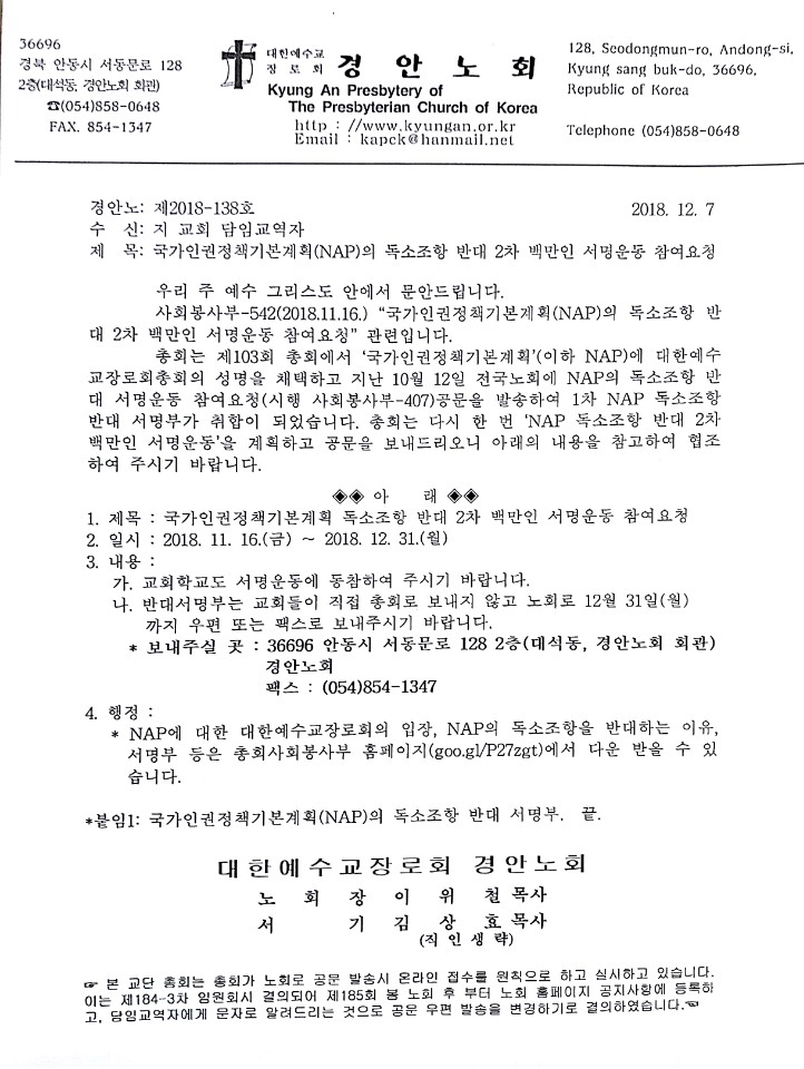 Á¦¸ñ   [ÀϹÝ] ±¹°¡ÀαÇÁ¤Ã¥±âº»°èȹ(NAP)ÀÇ µ¶¼ÒÁ¶Ç× ¹Ý´ë 2Â÷ ¹é¸¸ÀÎ ¼­¸í¿îµ¿ Âü¿©¿äû