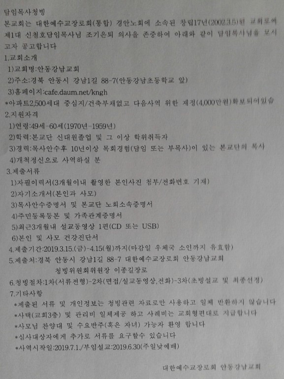 Á¦¸ñ   [ÀϹÝ] ¾Èµ¿°­³²±³È¸ ´ãÀÓ¸ñ»ç ûºù