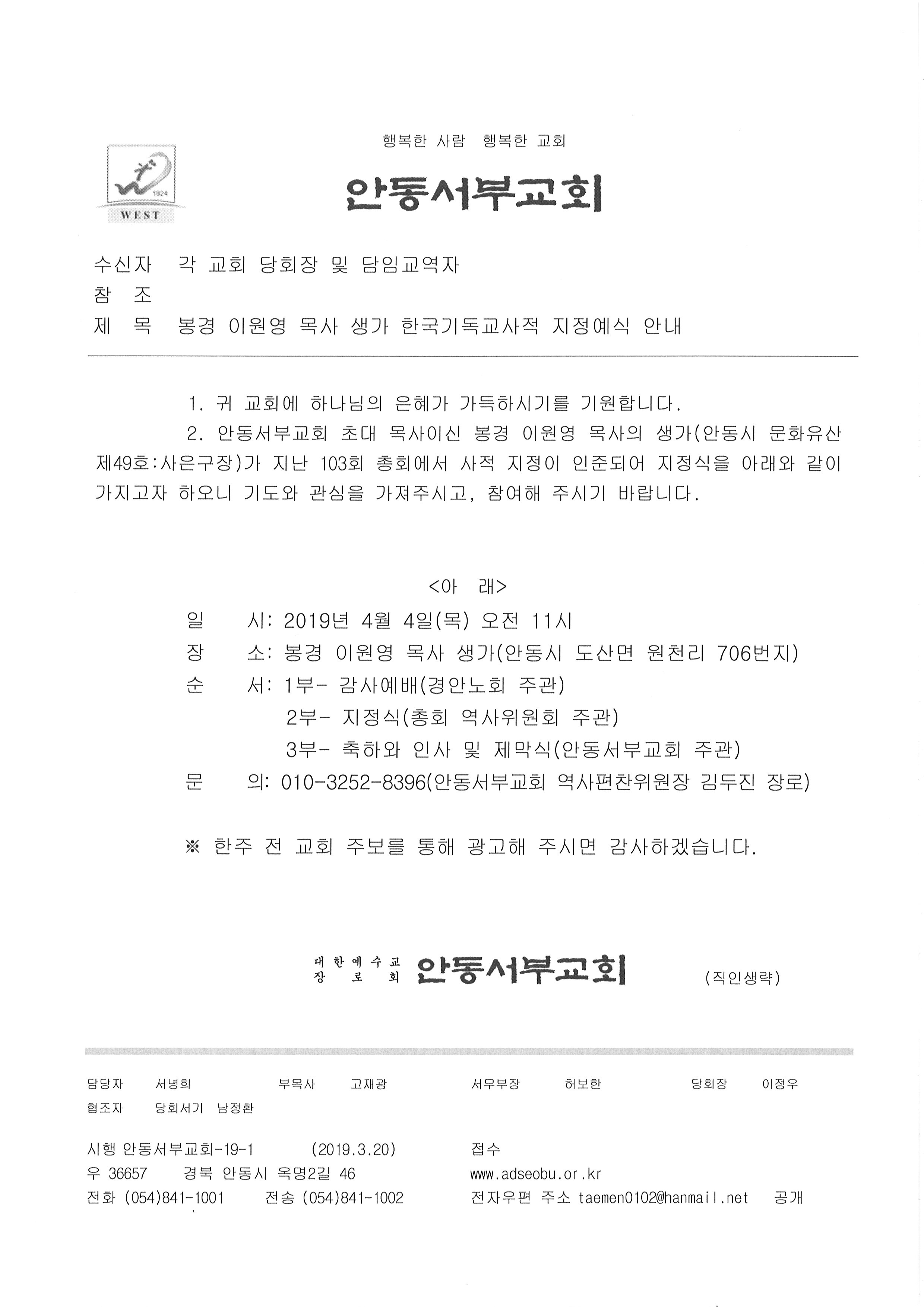 Á¦¸ñ   [ÀϹÝ] ºÀ°æ ÀÌ¿ø¿µ ¸ñ»ç »ý°¡ Çѱ¹±âµ¶±³»çÀû ÁöÁ¤¿¹½Ä(4/4)