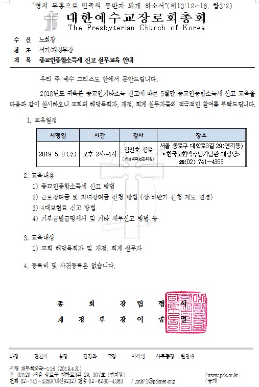 Á¦¸ñ   [ÀϹÝ] Á¾±³ÀÎÁ¾Çռҵ漼 ½Å°í ½Ç¹«±³À° ¾È³»(5/8)
