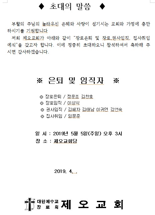 Á¦¸ñ   [ÀϹÝ] Á¦¿À±³È¸ ÀºÅð ¹× ÀÓÁ÷¿¹½Ä(5/5)