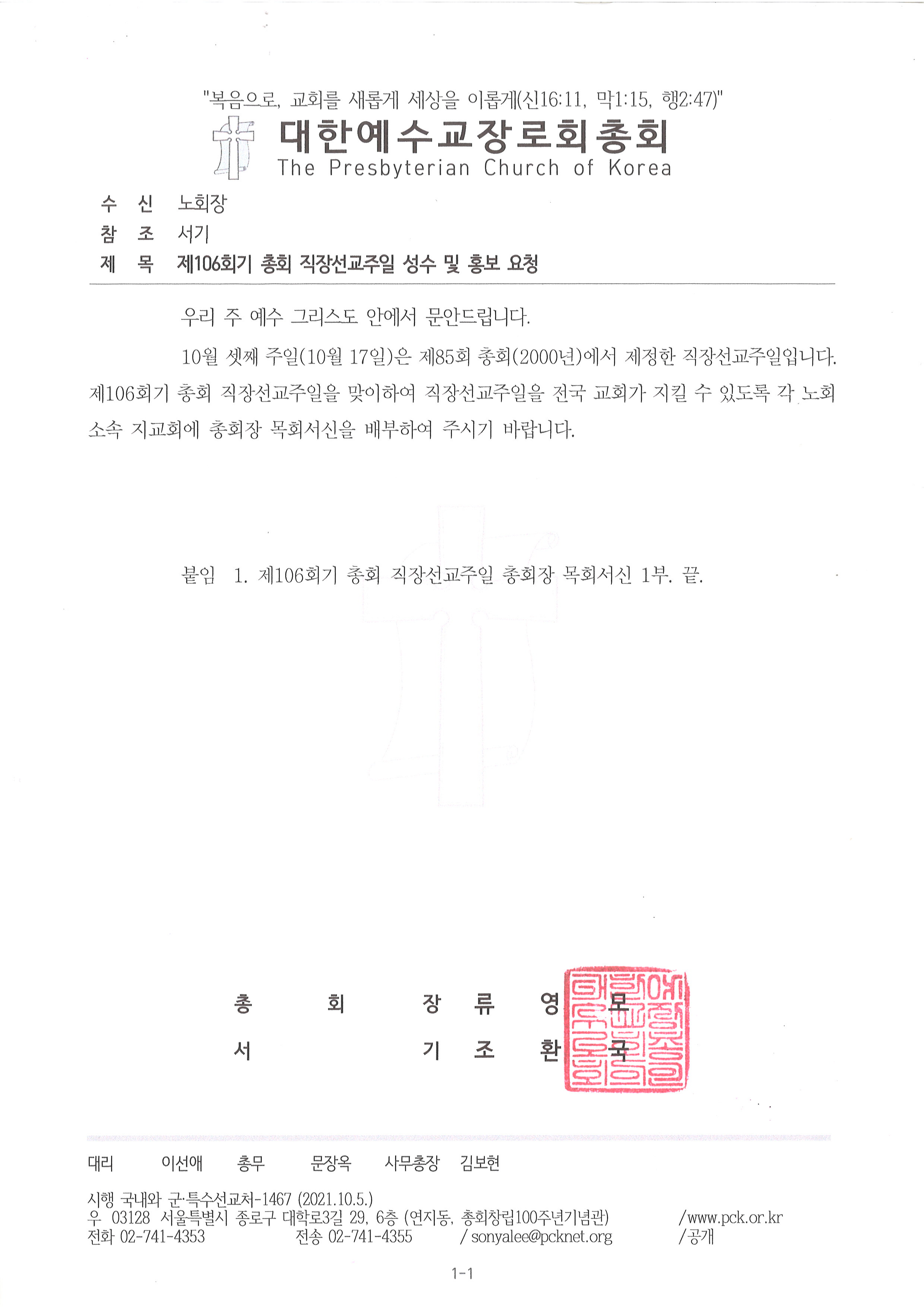 Á¦¸ñ   [°ø¹®] Á¦106ȸ±â ÃÑȸ Á÷Àå¼±±³ÁÖÀÏ ¼º¼ö ¹× È«º¸ ¿äû