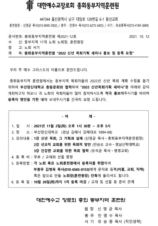 Á¦¸ñ   [°ø¹®] ÃÑȸµ¿ºÎÁö¿ªÈƷÿø "2022³â ½Å³â ¸ñȸ±âȹ ¼¼¹Ì³ª"(11/2)