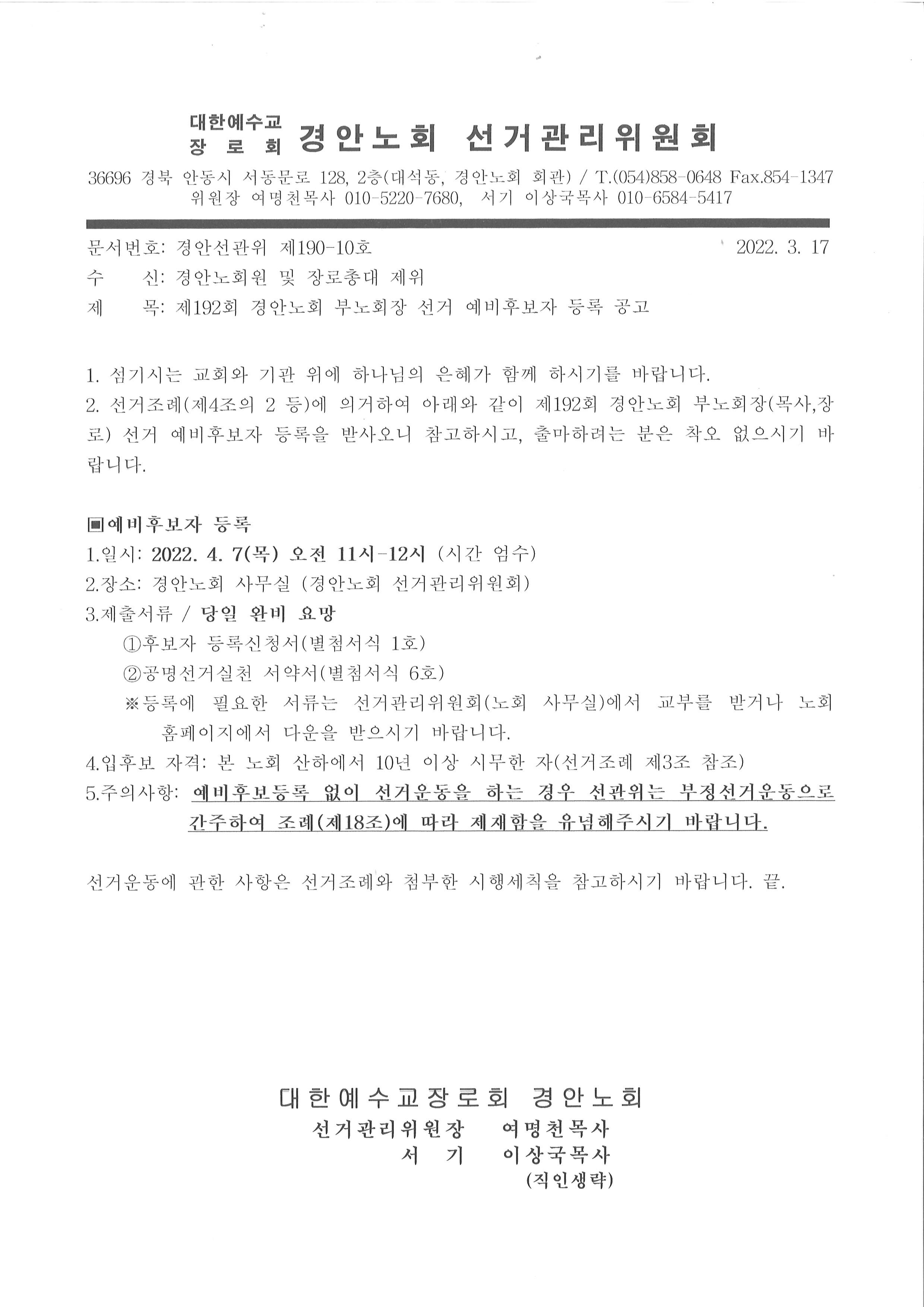 Á¦¸ñ   [°ø¹®] Á¦192ȸ °æ¾È³ëȸ ºÎ³ëȸÀå ¼±°Å ¿¹ºñÈĺ¸ÀÚ µî·Ï °ø°í