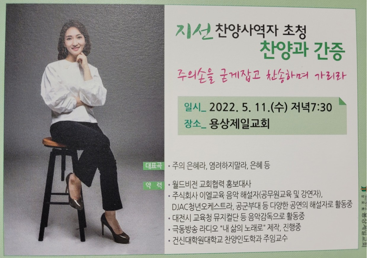 Á¦¸ñ   [ÀϹÝ] ¿ë»óÁ¦Àϱ³È¸ Áö¼±Âù¾ç»ç¿ªÀÚ ÃÊû Âù¾ç°ú°£Áõ(5/11)