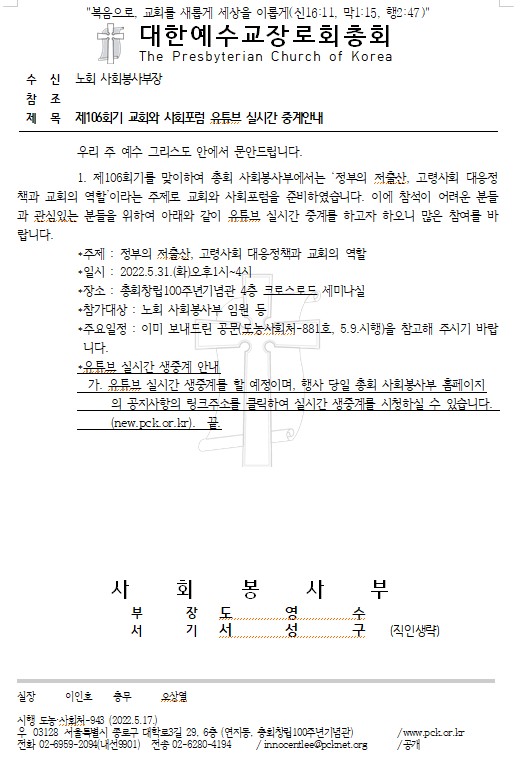 À¯Æ©ºê ½Ç½Ã°£ ¹æ¼Û http://new.pck.or.kr/