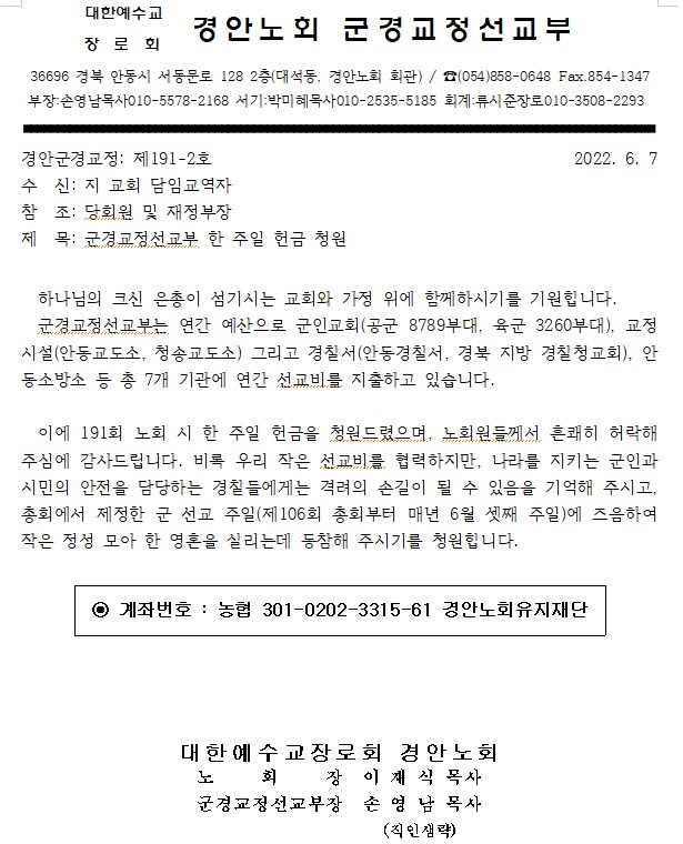 Á¦¸ñ   [°ø¹®] ±º°æ±³Á¤¼±±³ºÎ ÇÑÁÖÀÏÇå±Ý û¿ø