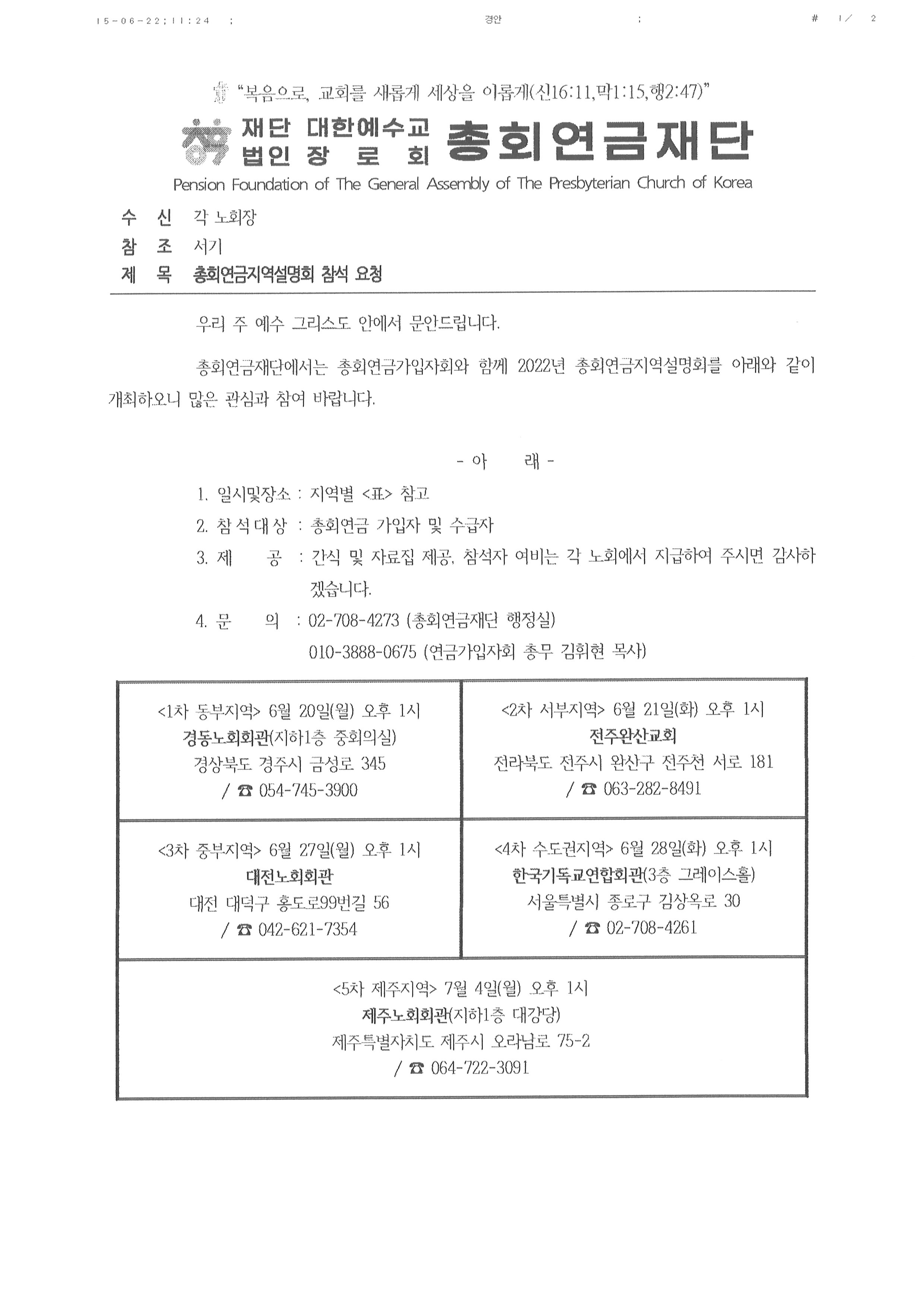 Á¦¸ñ   [°ø¹®] ÃÑȸ¿¬±ÝÁö¿ª¼³¸íȸ Âü¼® ¿äû(µ¿ºÎÁö¿ª6/20)