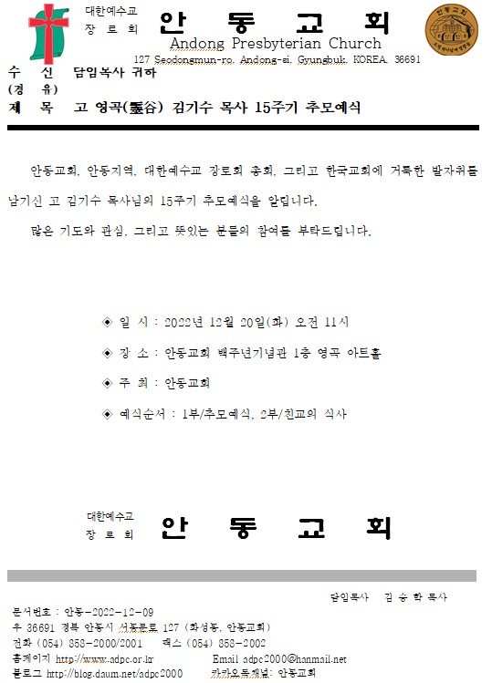 Á¦¸ñ   [°ø¹®] °í.¿µ°î ±è±â¼ö ¸ñ»ç 15ÁÖ±â Ã߸𿹽Ä(12/20)