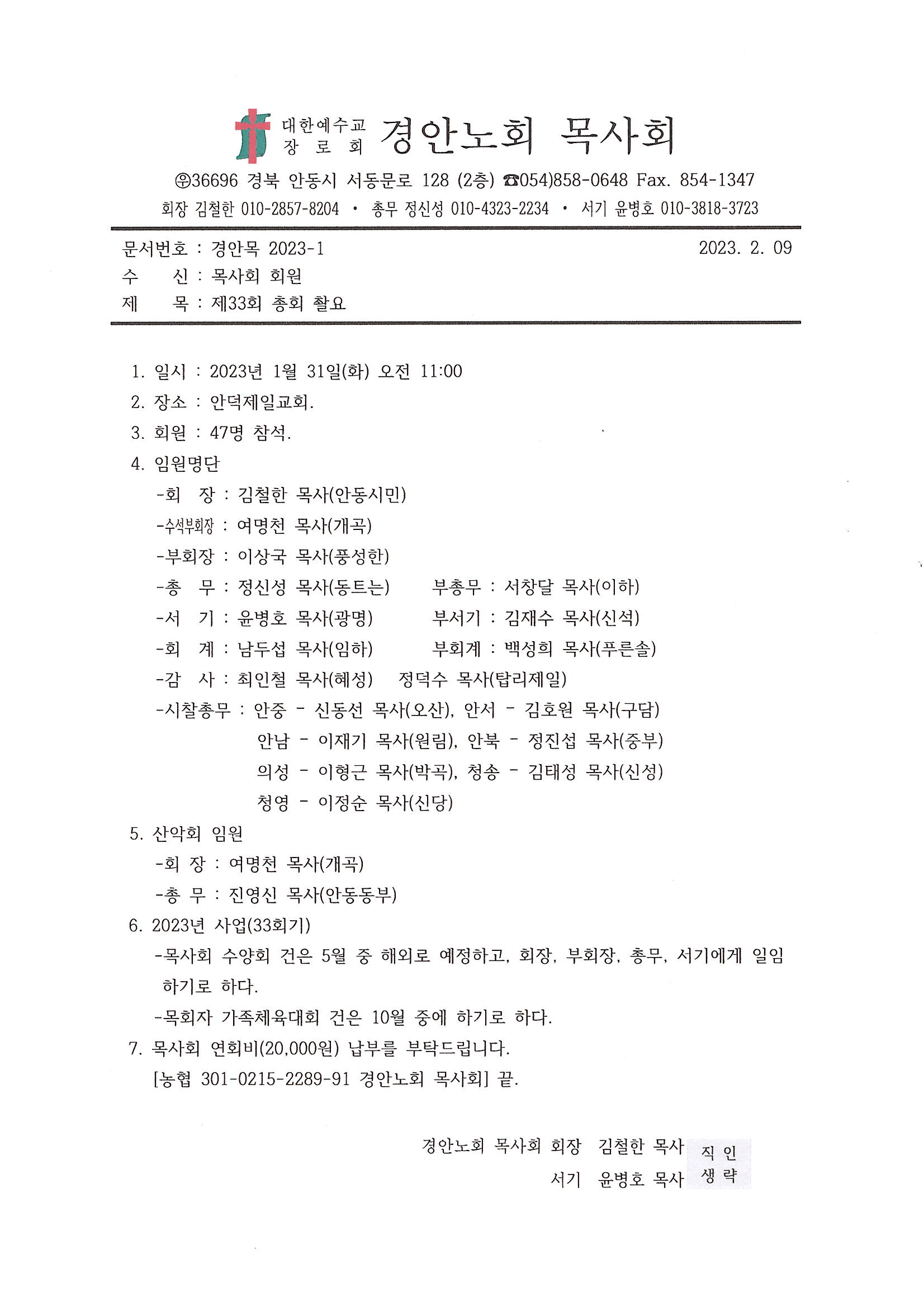 Á¦¸ñ   [°ø¹®] °æ¾È³ëȸ ¸ñ»çȸ Á¦33ȸ ÃÑȸ ÃÔ¿ä