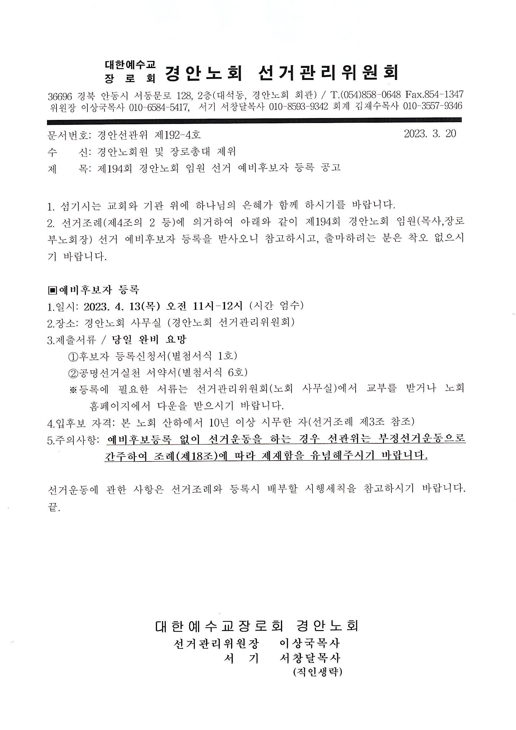 Á¦¸ñ   [°ø¹®] Á¦194ȸ °æ¾È³ëȸ ÀÓ¿ø ¼±°Å ¿¹ºñÈĺ¸ÀÚ µî·Ï °ø°í(4/13)