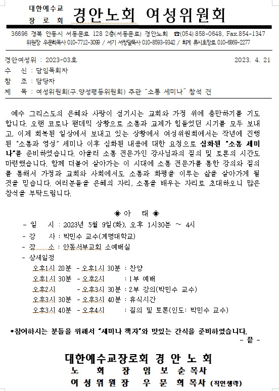 Á¦¸ñ   [°ø¹®] ¿©¼ºÀ§¿øÈ¸(±¸.¾ç¼ºÆòµîÀ§¿øÈ¸) ÁÖ°ü "¼ÒÅë ¼¼¹Ì³ª" Âü¼® °Ç(5/9)