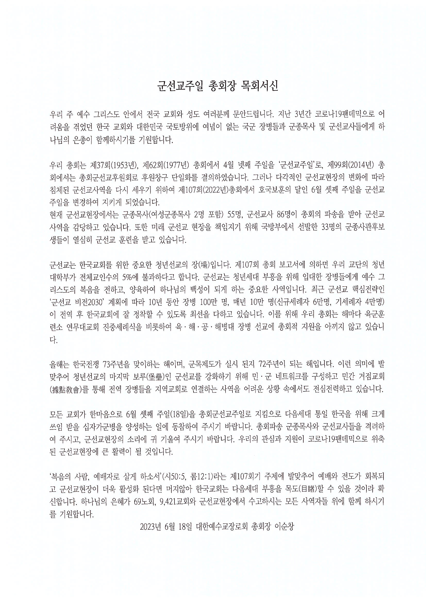 Á¦¸ñ   [°ø¹®] ÃÑȸ±º¼±±³ÁÖÀÏ(6/18) ÃÑȸÀå ¸ñȸ¼­½Å
