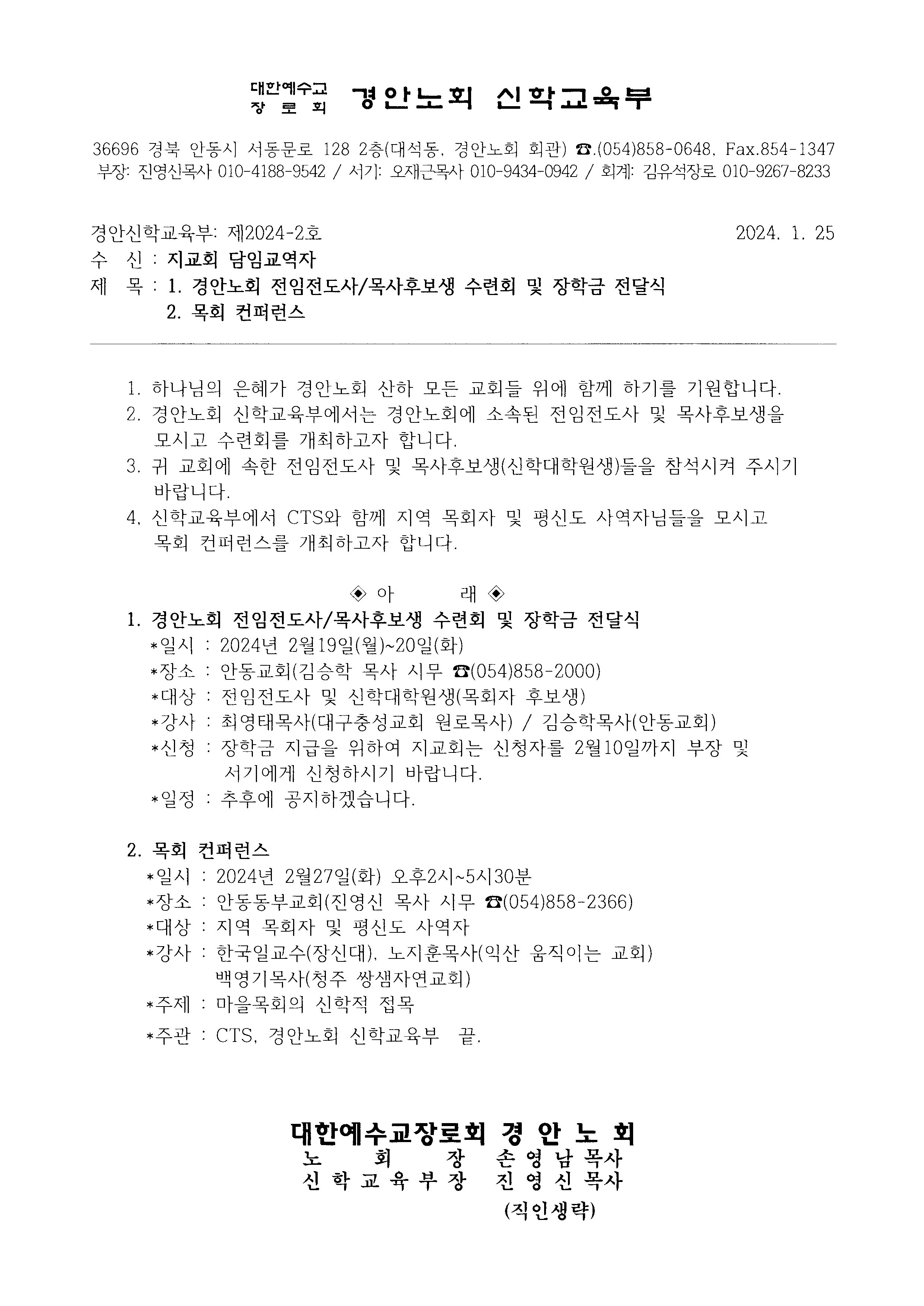 Á¦¸ñ   [°ø¹®] 1.°æ¾È³ëȸÀüÀÓÀüµµ»ç/¸ñ»çÈ帻ý¼ö·Ãȸ¹×ÀåÇбÝÀü´Þ½Ä(2/19-20)2.¸ñȸÄÁÆÛ·±½º(2/27)