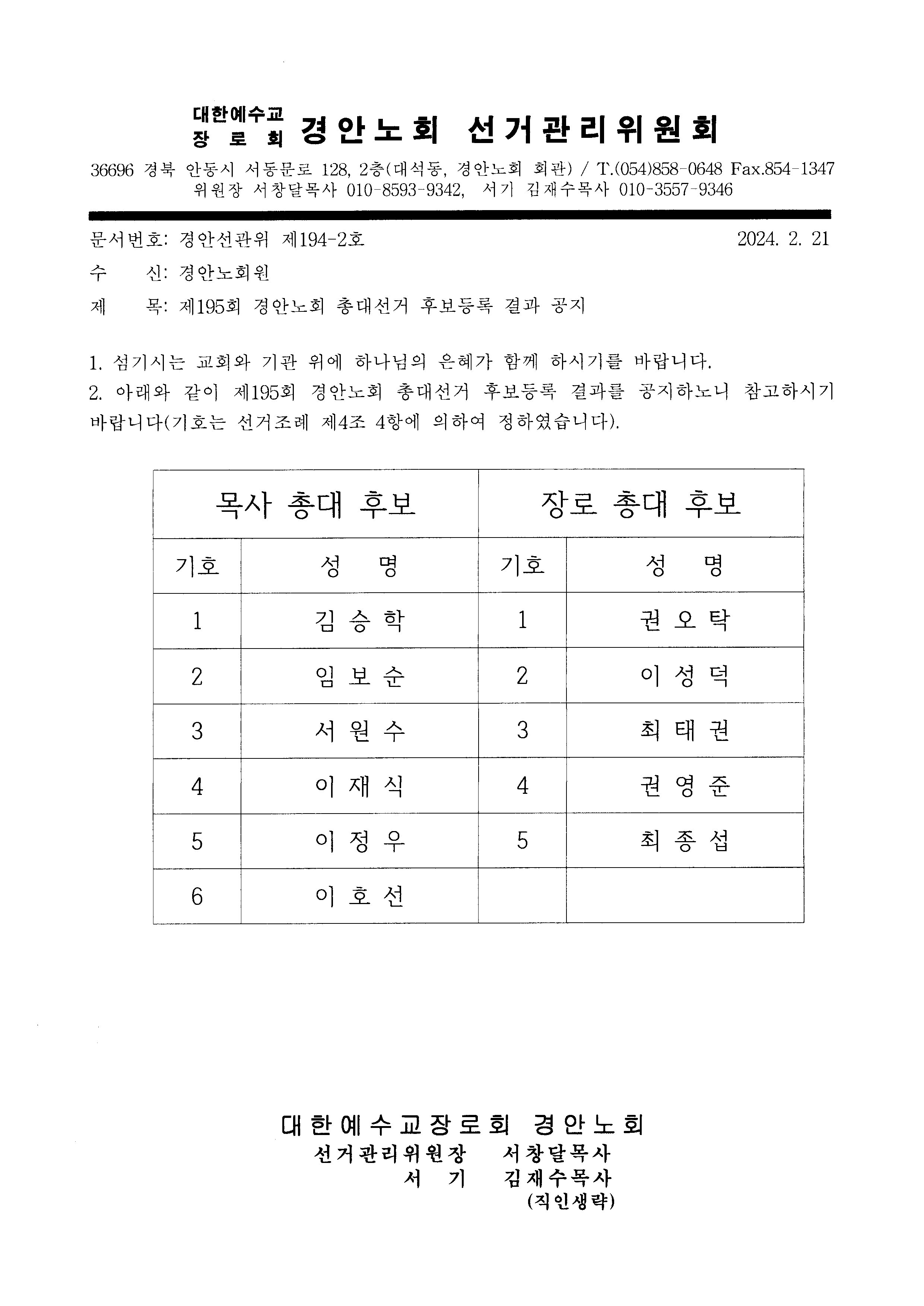 Á¦¸ñ   [°ø¹®] Á¦195ȸ °æ¾È³ëȸ ÃÑ´ë¼±°Å È帵î·Ï °á°ú °øÁö