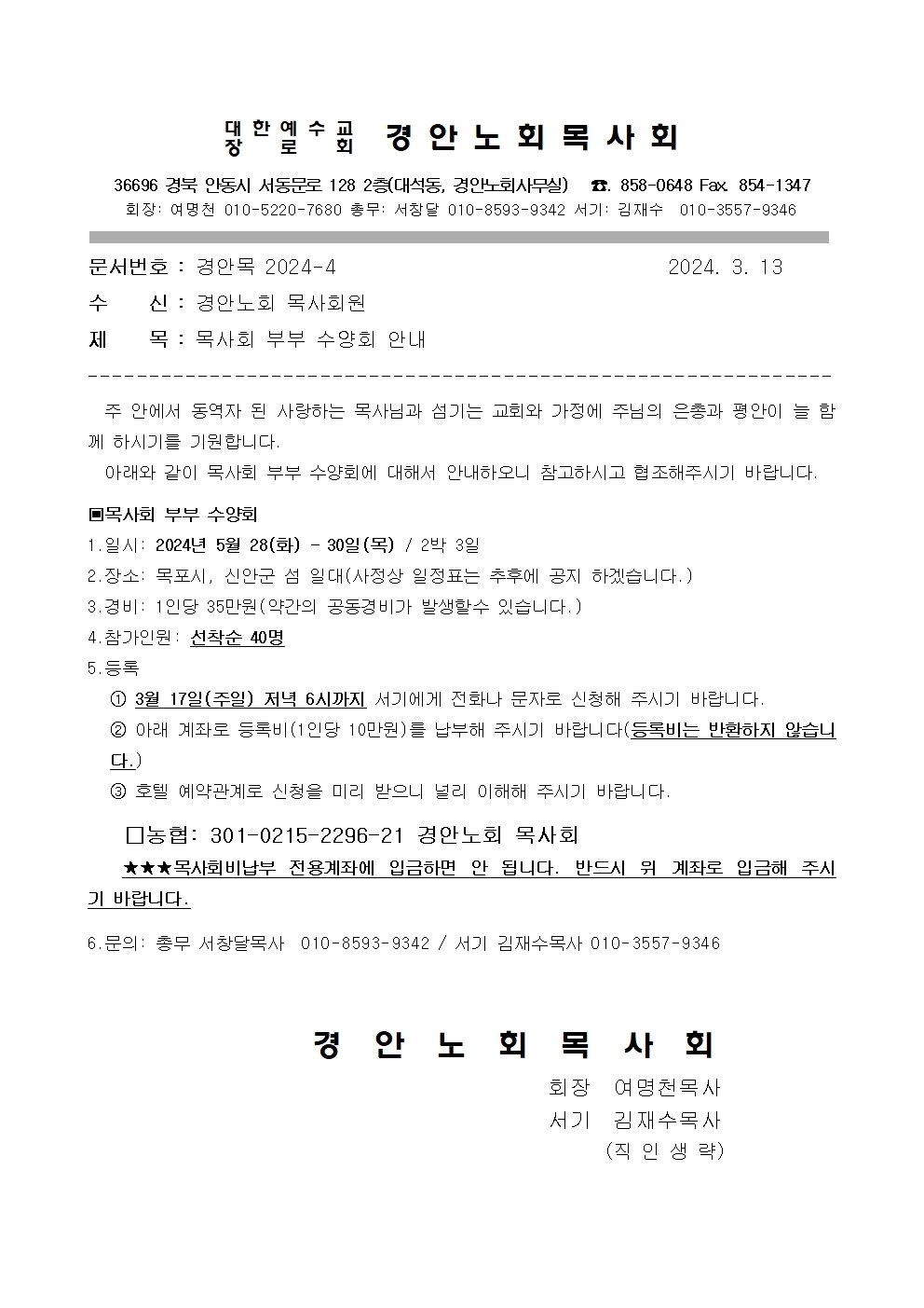 Á¦¸ñ   [°ø¹®] ¸ñ»çȸ ºÎºÎ ¼ö¾çȸ ¾È³»(5/28-30)