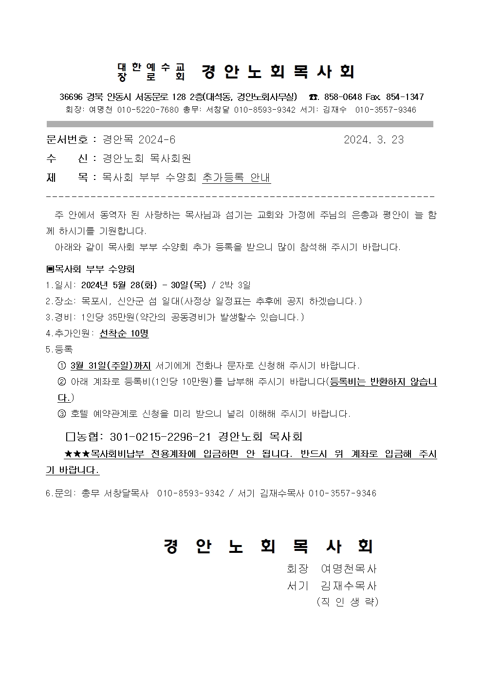 Á¦¸ñ   [°ø¹®] ¸ñ»çȸ ºÎºÎ¼ö¾çȸ Ãß°¡µî·Ï ¸¶°¨