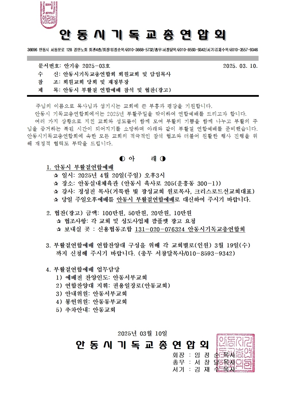 Á¦¸ñ   [°ø¹®] ¾Èµ¿½Ã ºÎȰÀý ¿¬ÇÕ¿¹¹è(4/20)