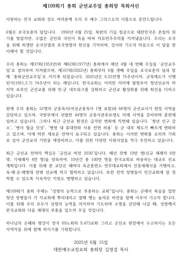 Á¦¸ñ   [°ø¹®] ±º¼±±³ÁÖÀÏ ÇÑ ÁÖ Çå±Ý û¿ø(±º¼±±³ÁÖÀÏ ÃÑȸÀå ¸ñȸ¼­½Å)