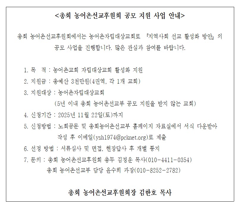 ÷ºÎÆÄÀÏ   ³ó¾îÃÌÀÚ¸³´ë»ó±³È¸ °ø¸ð½Åû¼­20251001 (2).hwp (39.0K) l ´Ù¿î:0