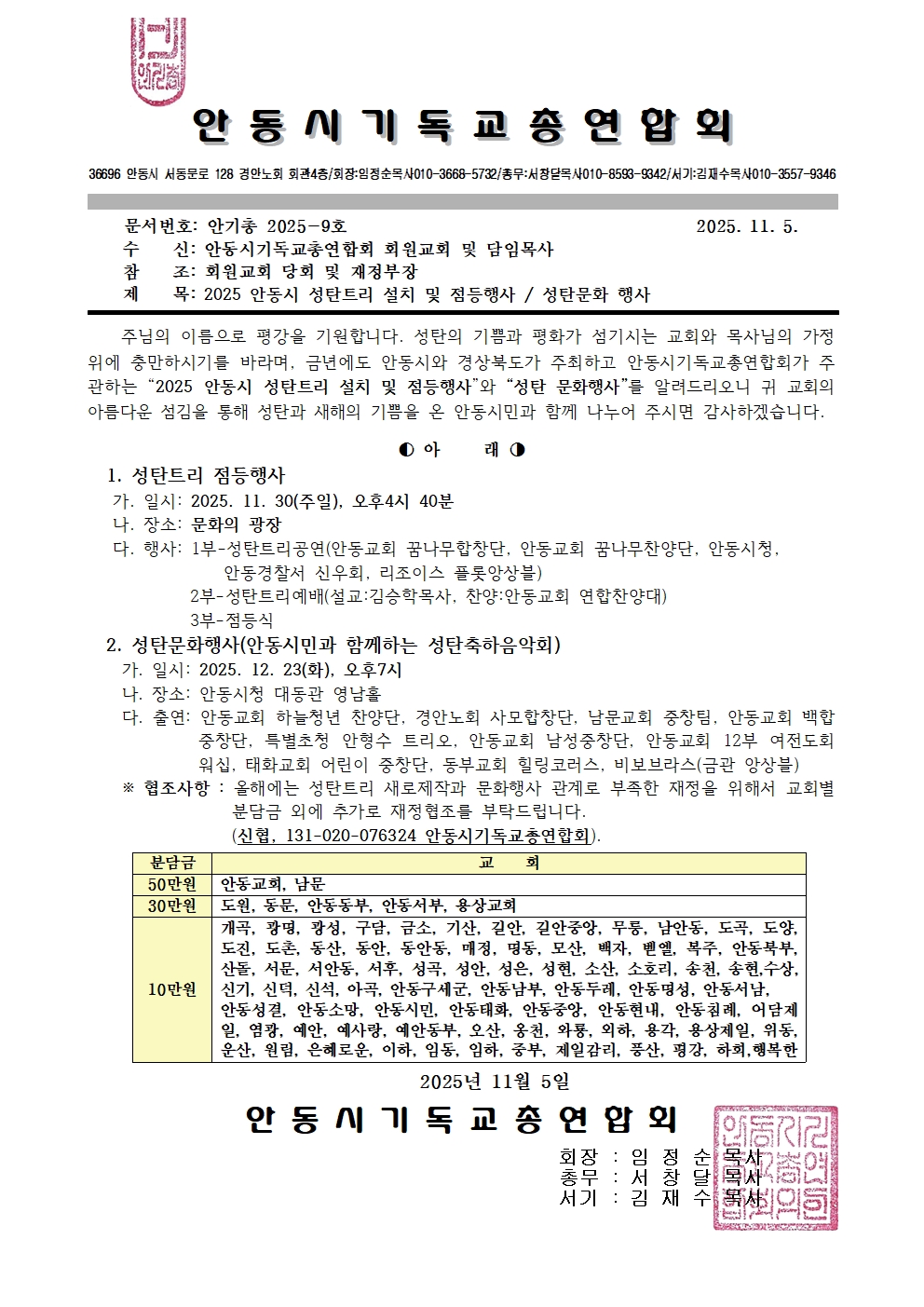 Á¦¸ñ   [°ø¹®] ¾Èµ¿½Ã ¼ºÅºÆ®¸® ¼³Ä¡ ¹× Á¡µîÇà»ç(11/30)/¼ºÅº¹®È­Çà»ç(12/23)