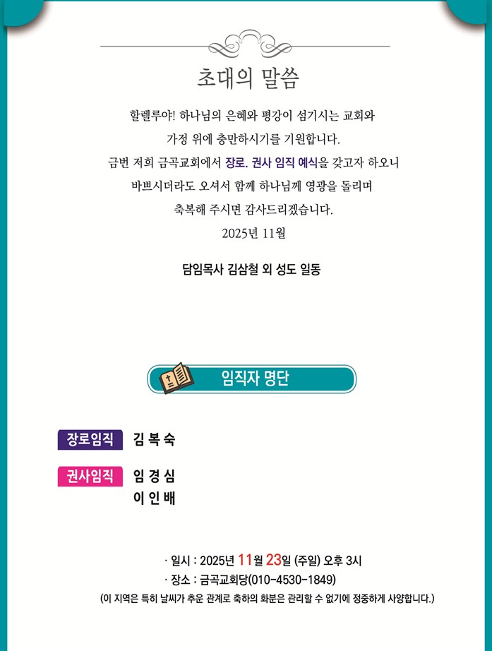 Á¦¸ñ   [°ø¹®] ±Ý°î±³È¸ Àå·Î, ±Ç»ç ÀÓÁ÷¿¹½Ä(11/23)