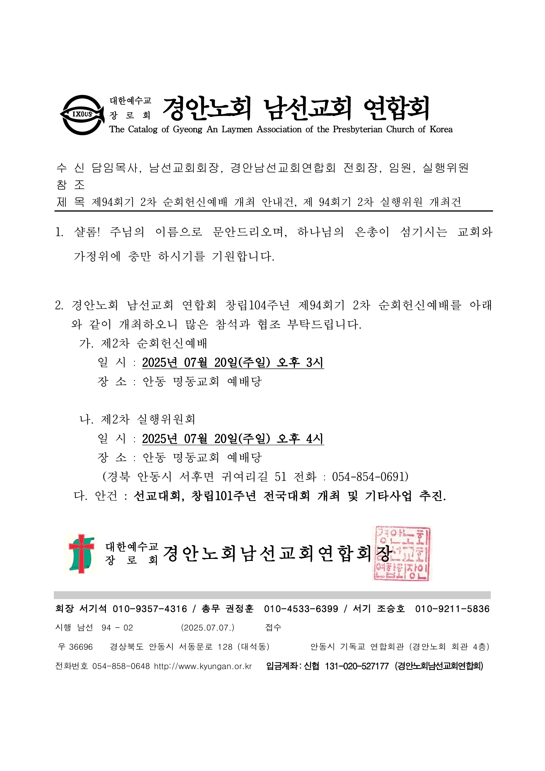 Á¦¸ñ   Á¦94ȸ±â 2Â÷ ¼øÈ¸Çå½Å¿¹¹è ¹× Á¦ 94ȸ±â 2Â÷ ÀÓ½ÇÇàÀ§¿øÈ¸ °³ÃÖ(7/20)