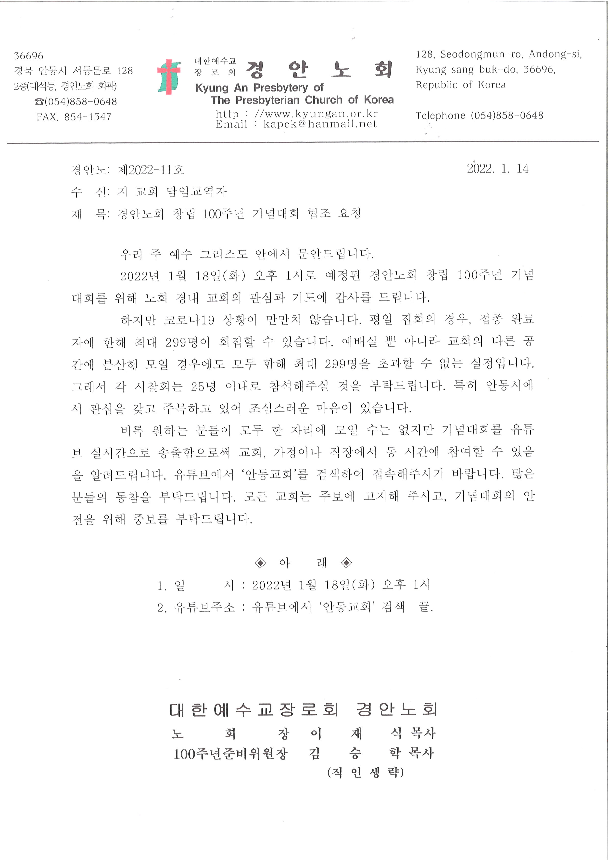 Á¦¸ñ   [°ø¹®] °æ¾È³ëȸ ⸳ 100Áֳ⠱â³ä´ëȸ(1/18) ÇùÁ¶ ¿äû