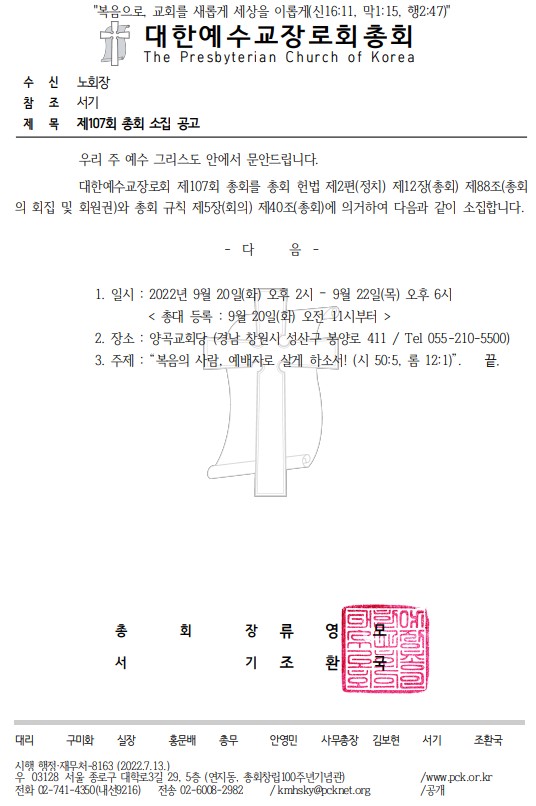 Á¦¸ñ   [°ø¹®] Á¦107ȸ ÃÑȸ ¼ÒÁý °ø°í(9/20-22)