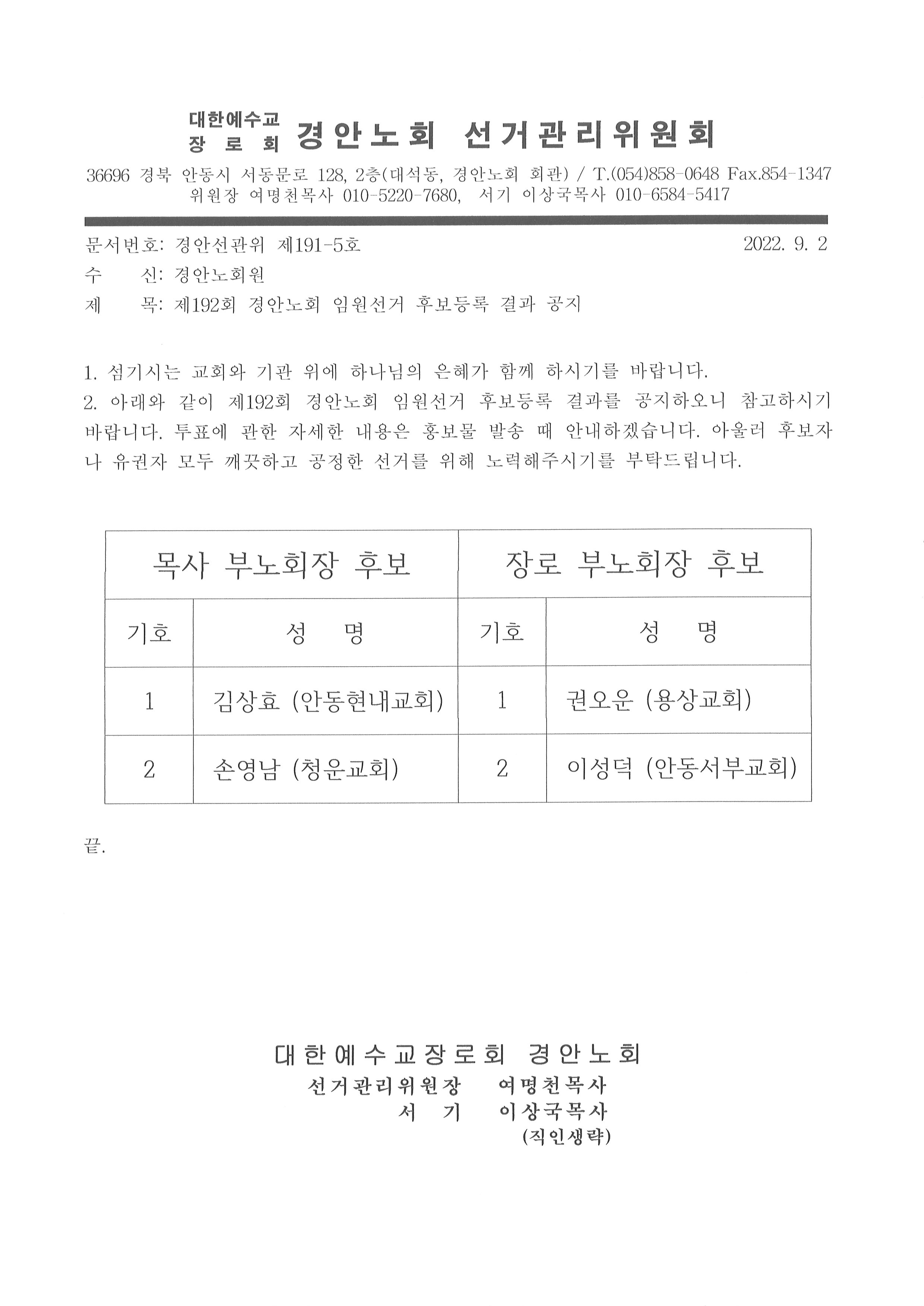 Á¦¸ñ   [°ø¹®] Á¦192ȸ °æ¾È³ëȸ ÀÓ¿ø¼±°Å È帵î·Ï °á°ú °øÁö