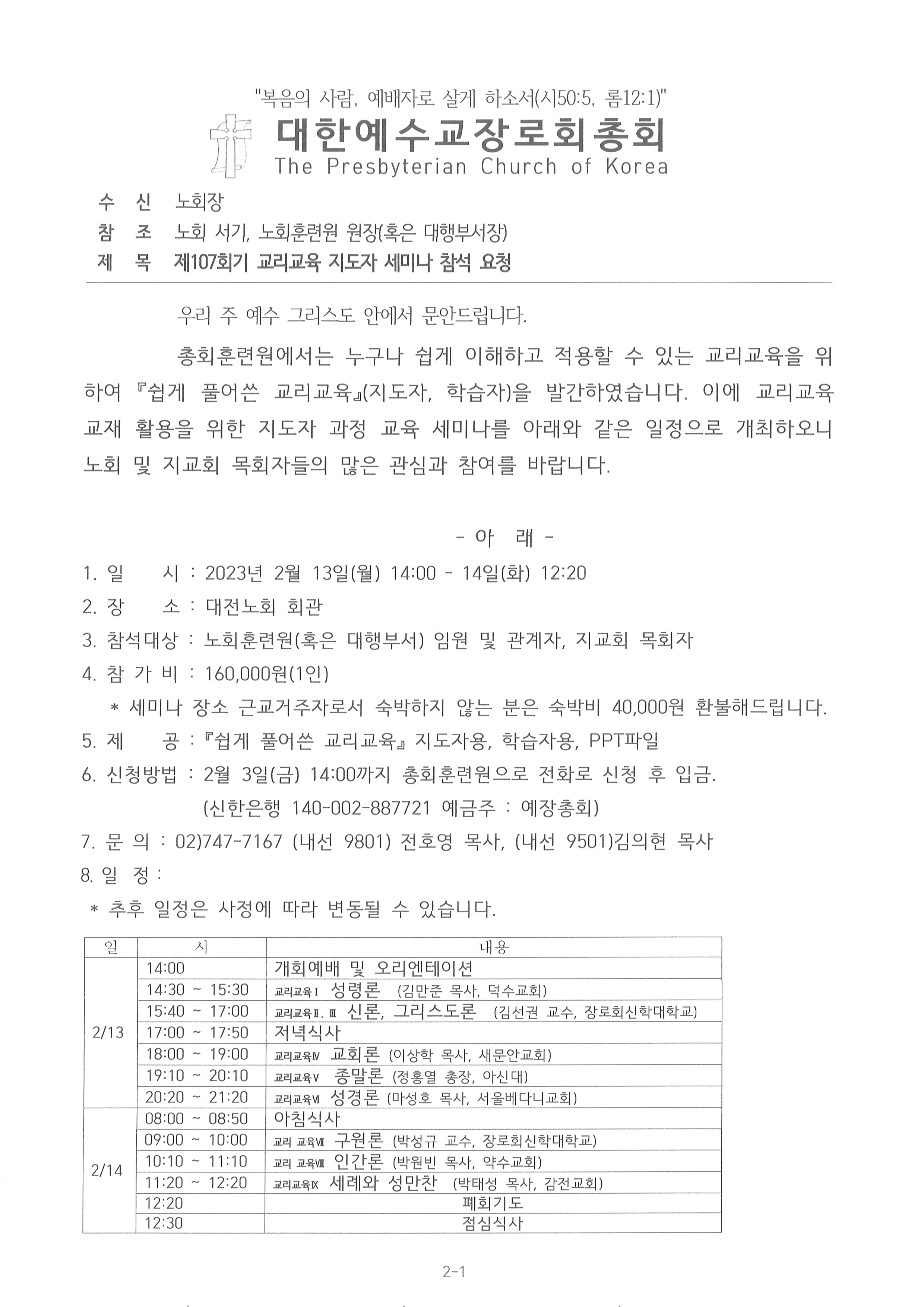 Á¦¸ñ   [°ø¹®] Á¦107ȸ±â ±³¸®±³À° ÁöµµÀÚ ¼¼¹Ì³ª Âü¼® ¿äû(2/13-14)