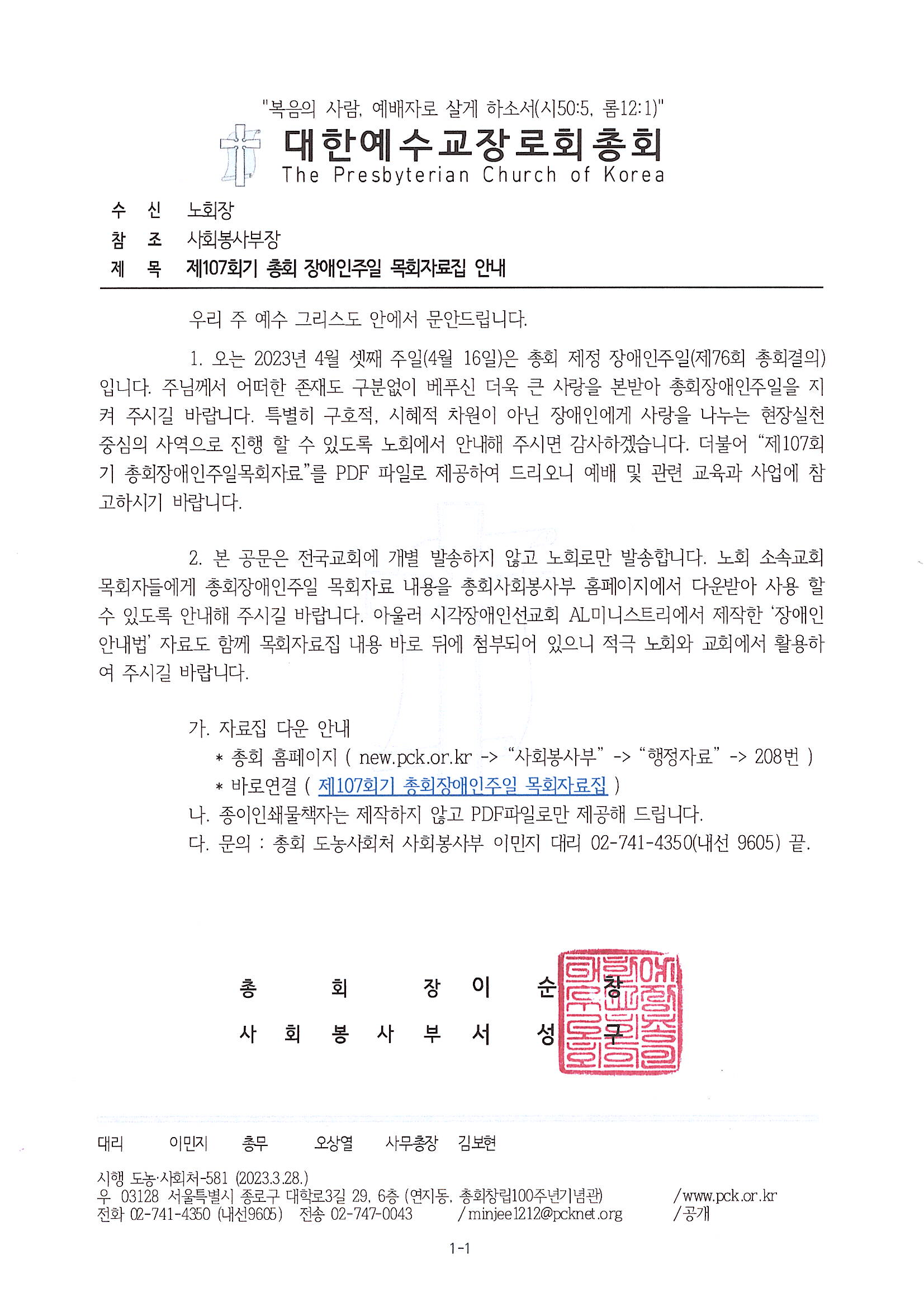 Á¦107ȸ±â Àå¾ÖÀÎÁÖÀÏ ¸ñȸÀÚ·áÁý (pck.or.kr)
