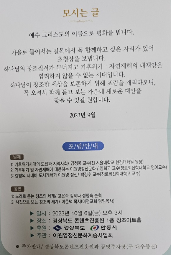 Á¦¸ñ   [°ø¹®] Á¦1ȸ ±âÈÄÀ§±â,ÀÚ¿¬ÀçÇØ ´ëÀÀÀ» À§ÇÑ ÀÌ¿ø¿µÁ¤½Å¹®È­ÇмúÆ÷·³(10/6)