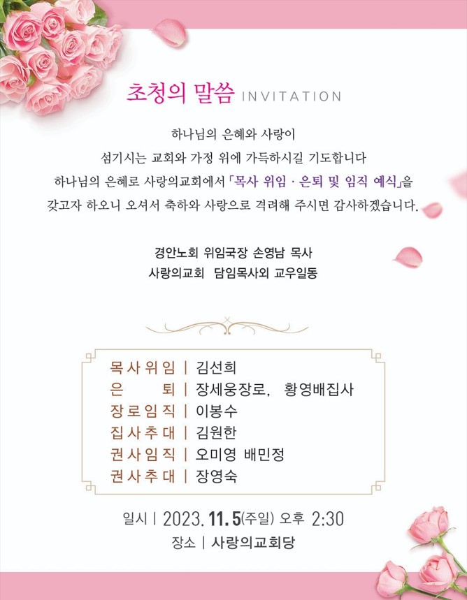 Á¦¸ñ   [°ø¹®] »ç¶ûÀDZ³È¸ ¸ñ»çÀ§ÀÓ ¹× ÀÓÁ÷¿¹½Ä(11/5)