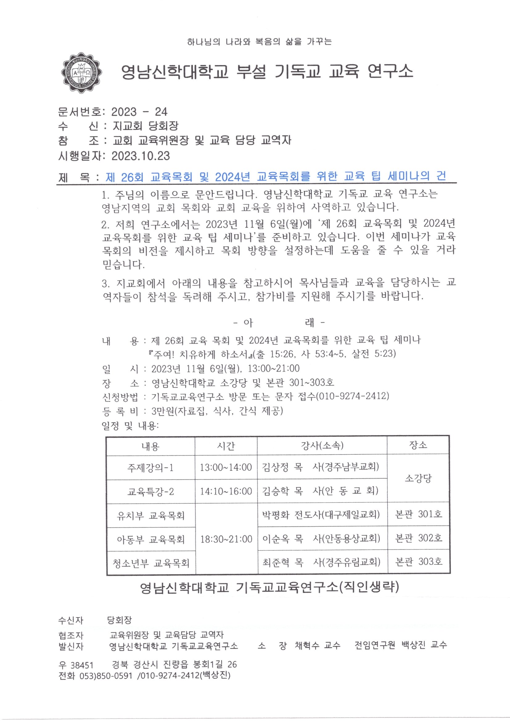 Á¦¸ñ   [°ø¹®] Á¦26ȸ ±³À°¸ñȸ ¹× 2024³â±³À°¸ñȸ¸¦ À§ÇÑ ±³À°ÆÁ¼¼¹Ì³ª(11/6)