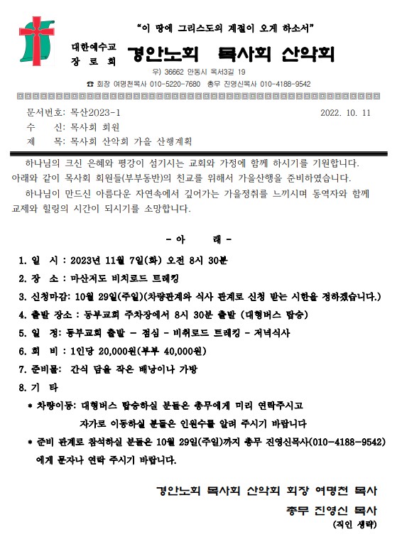 Á¦¸ñ   [°ø¹®] ¸ñ»çȸ »ê¾Çȸ °¡À» »êÇà°èȹ(11/7)
