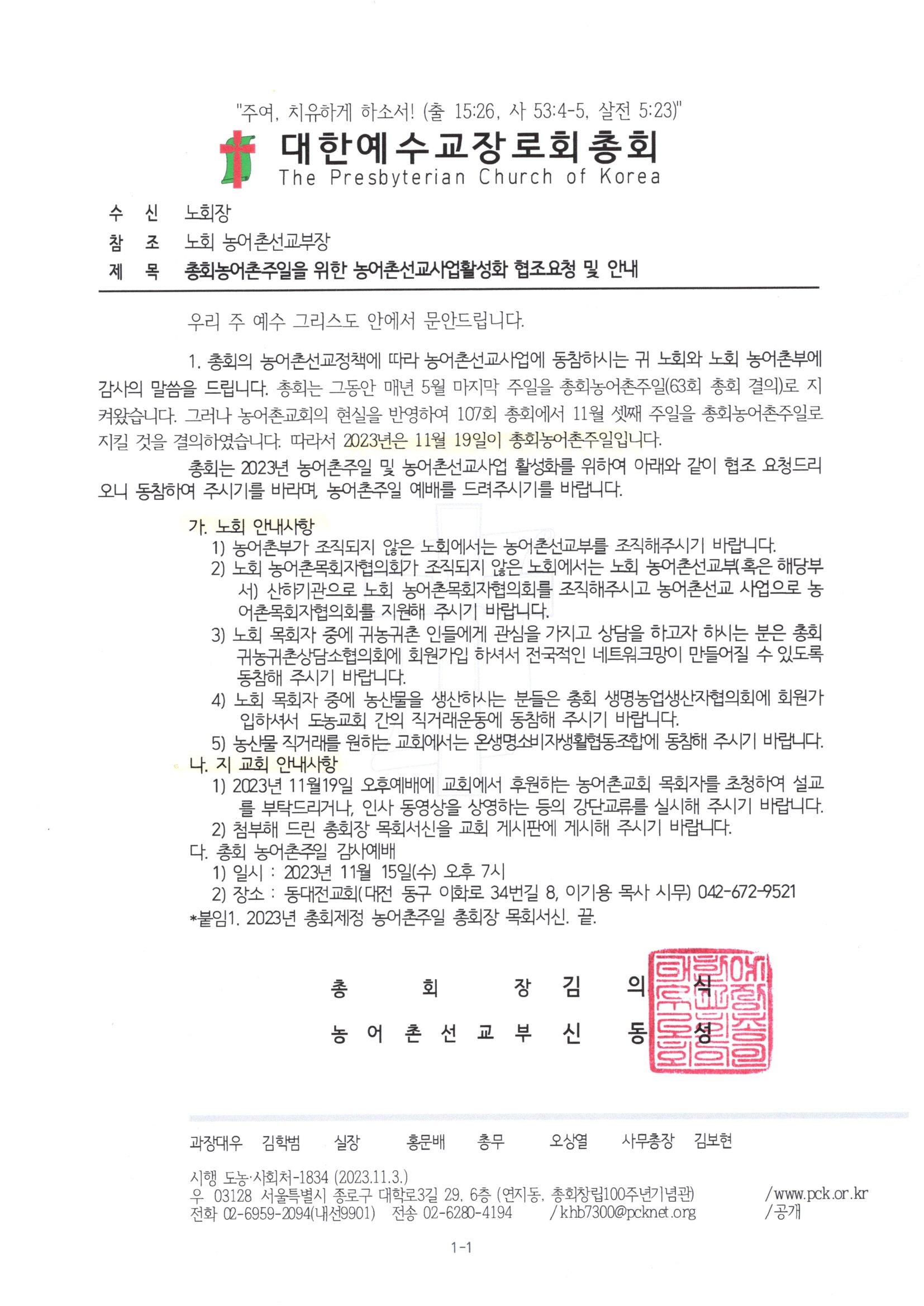 Á¦¸ñ   [°ø¹®] ÃÑȸ³ó¾îÃÌÁÖÀÏ(11/19)À» À§ÇÑ ³ó¾îÃ̼±±³»ç¾÷Ȱ¼ºÈ­ ÇùÁ¶¿äû ¹× ¾È³»