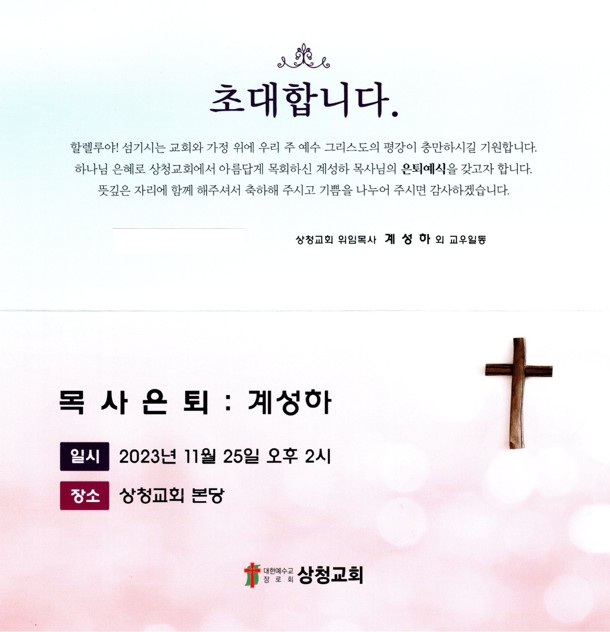 Á¦¸ñ   [ÀϹÝ] »óû±³È¸ °è¼ºÇÏ ¸ñ»ç ÀºÅ𿹽Ä(11/25)