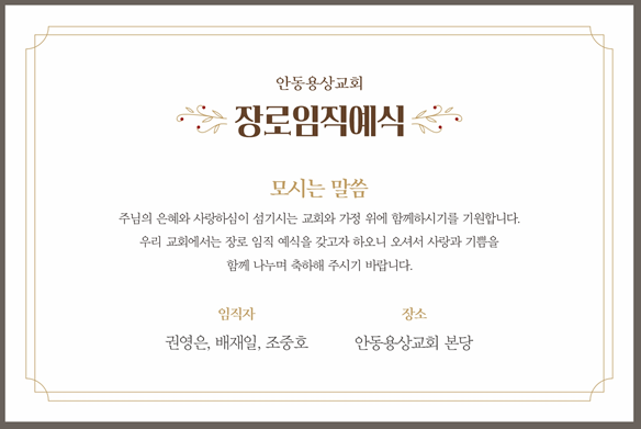 Á¦¸ñ   [ÀϹÝ] ¿ë»ó±³È¸ Àå·Î ÀÓÁ÷¿¹½Ä(12/3)