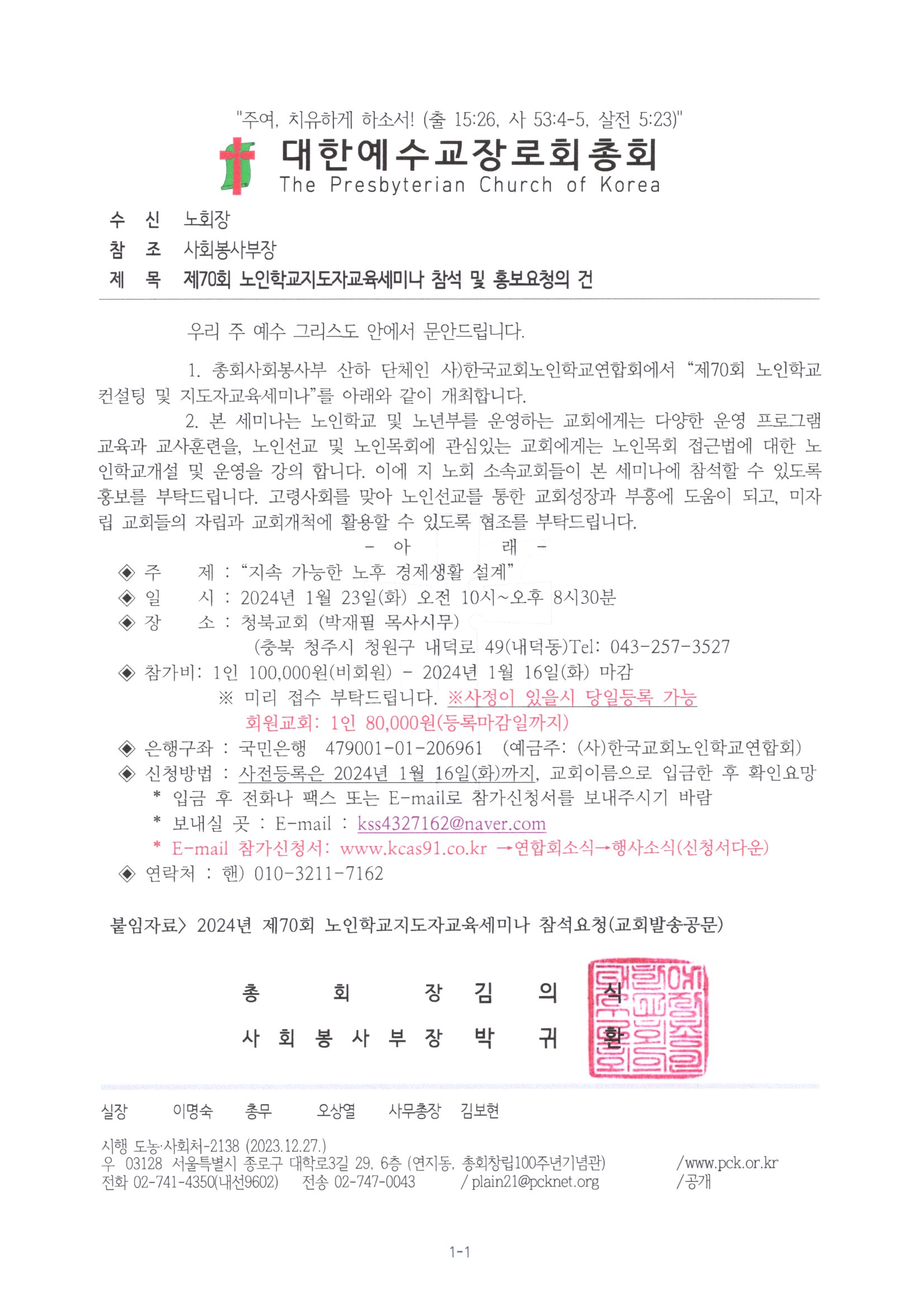 Á¦¸ñ   [°ø¹®] Á¦70ȸ ³ëÀÎÇб³ÁöµµÀÚ±³À°¼¼¹Ì³ª(1/23) Âü¼® ¹× È«º¸¿äûÀÇ °Ç