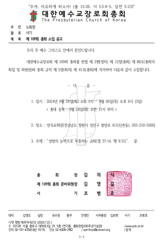 Á¦¸ñ   [°ø¹®] Á¦109ȸ ÃÑȸ ¼ÒÁý °ø°í(9/24-26)