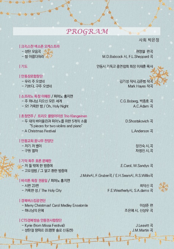 Á¦¸ñ   [ÀϹÝ] ¾Èµ¿½Ã¹Î°ú ÇÔ²²ÇÏ´Â 2024 ¼ºÅºÀ½¾Çȸ(12/21)