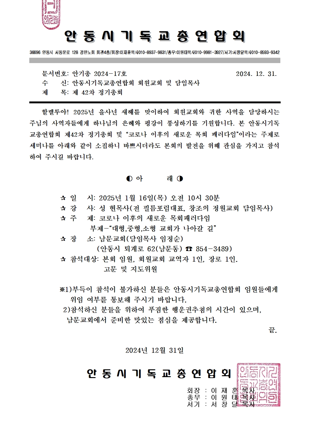 Á¦¸ñ   [°ø¹®] ¾È±âÃÑ Á¦42Â÷ Á¤±âÃÑȸ(1/16)