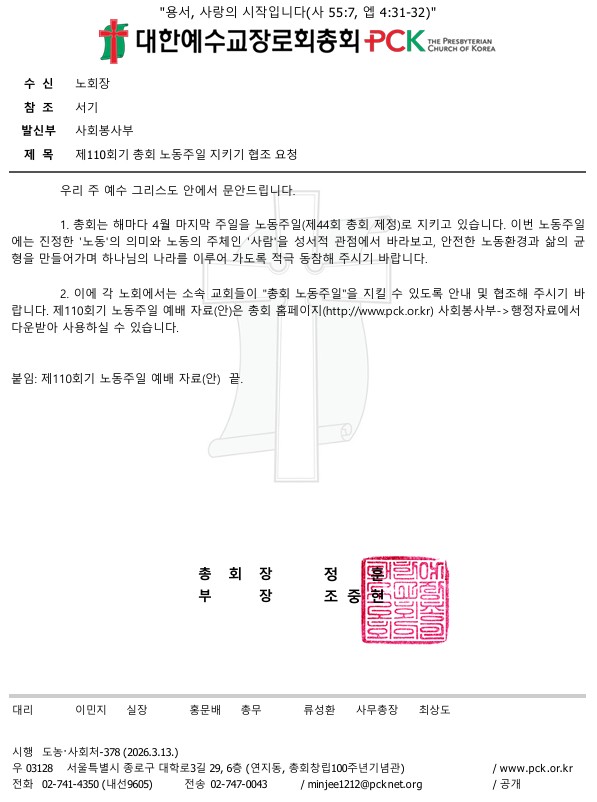 Á¦110ȸ±â ³ëµ¿ÁÖÀÏ ¿¹¹è¹®